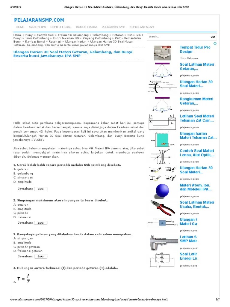 Fisika soal dan pembahasan gelombang bunyi dan cahaya pdf.